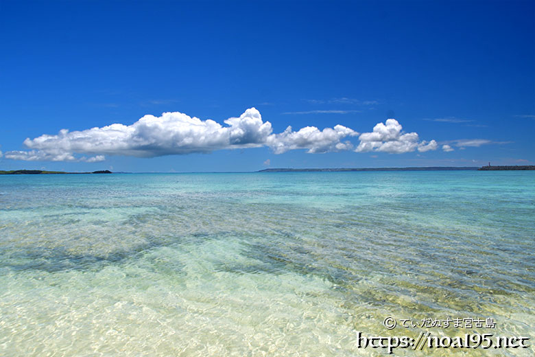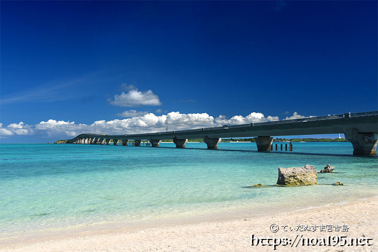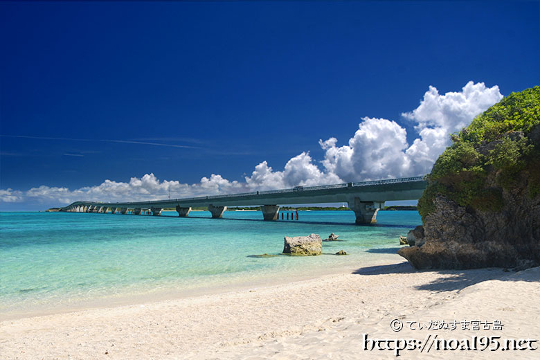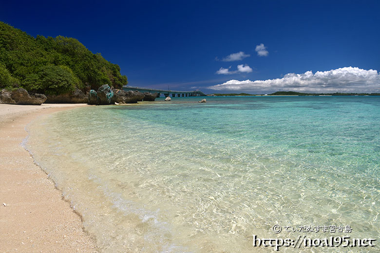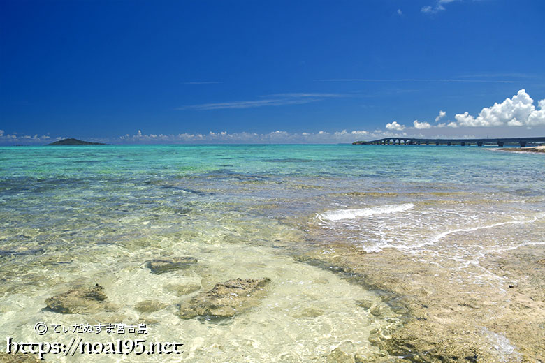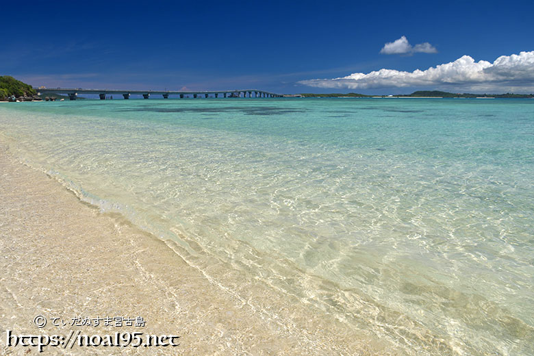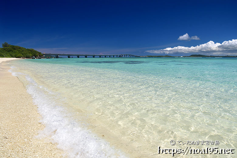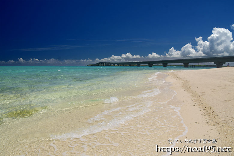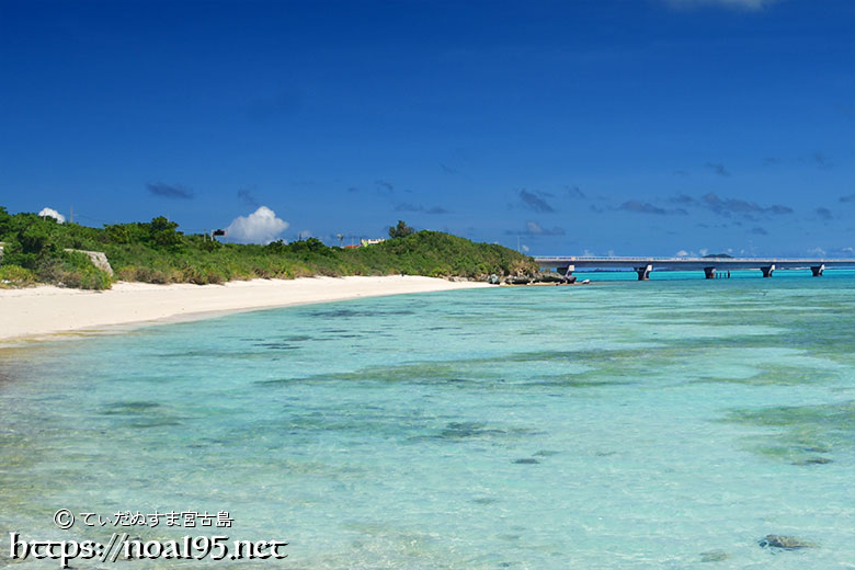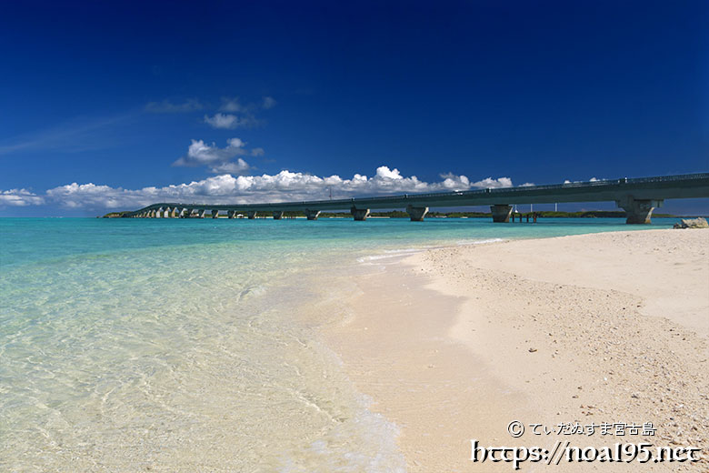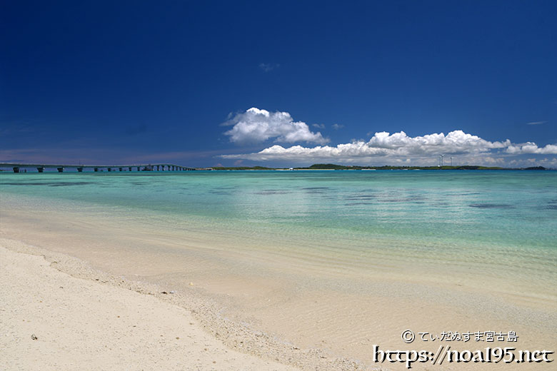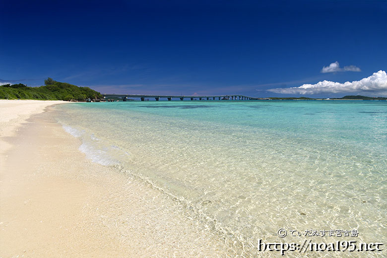 ビーチから見る池間大橋と青い海の風景はとても絵になります。