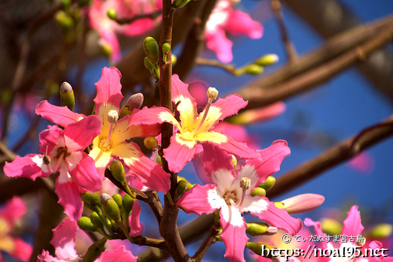 10月頃から宮古島の各地で花を咲かせていたトックリキワタ(徳利木綿)。